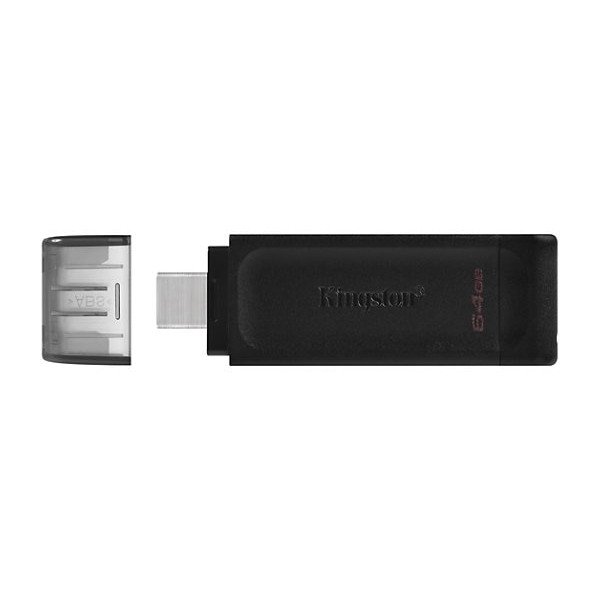 El Kingston DT70 de 64GB es un pendrive compacto con conector USB Tipo-C, diseñado para los dispositivos más actuales.